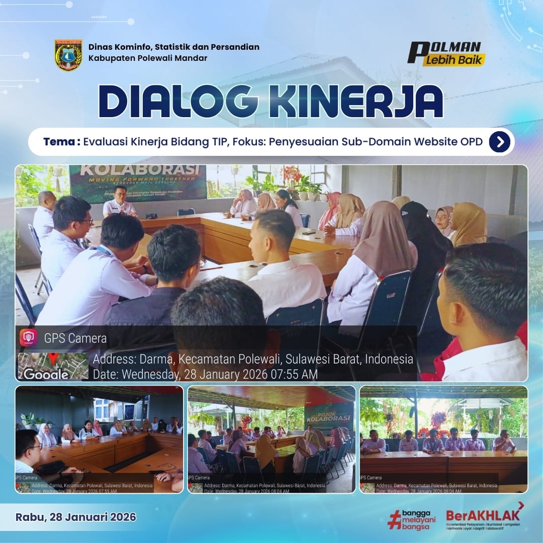 Dinas Komunikasi, Informatika, Statistik dan Persandian Kabupaten Polewali Mandar melaksanakan Dialog Kinerja Lingkup Dinas Kominfo SP yang dipimpin langsung oleh Sekretaris Daerah Nursaid, S.Sos., ...